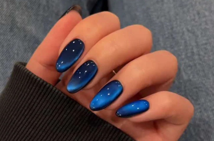 Cat eye nails σε μπλε χρώμα